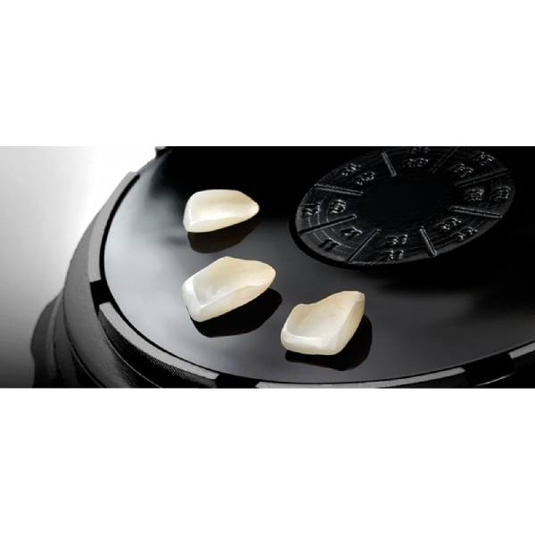 - Основа корпуса «Veneer ME» покрыта липким ковриком, сделанным из полиуретанового геля. Виниры прикрепляются указанным ковриком буккальной поверхностью и естественным образом фиксируются. Весь подготовительный процесс внутренней части винира (травление кислотой, силанизация) происходит в указанном положении без какого-либо риска сдвига или падения винира на пол. Материал коврика является стойким и может многократно применяться (он легко заменяем в случае сильного износа).