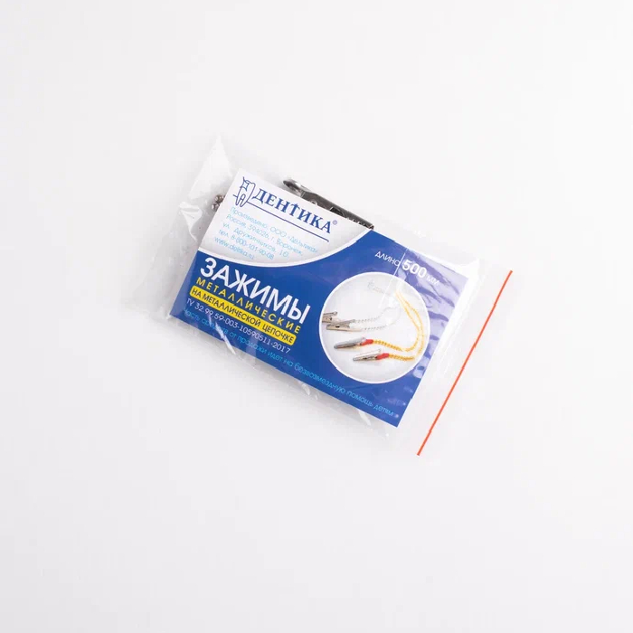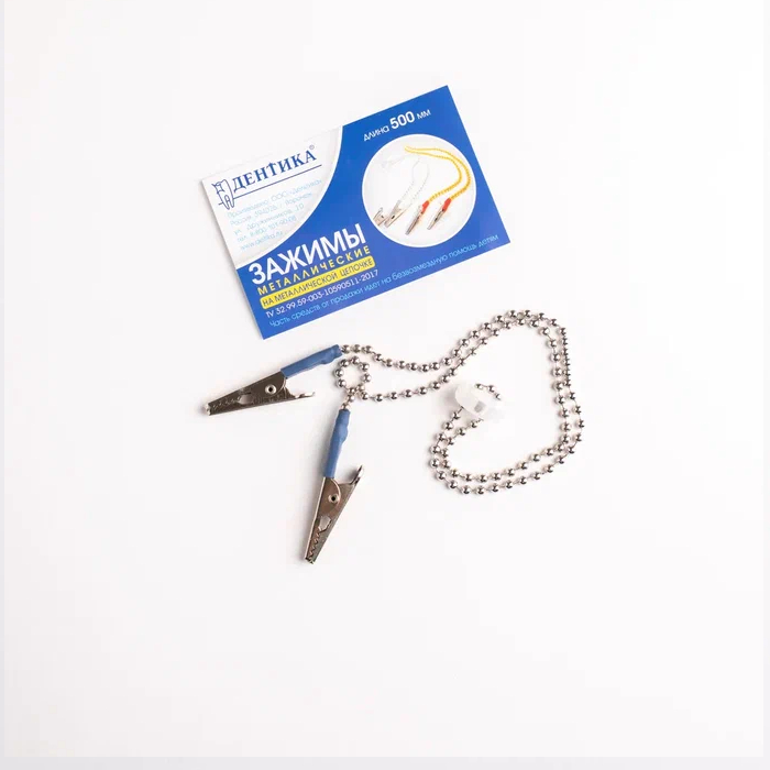 Металлические зажимы от производителя "Дентика" на цепочке для фиксации одноразовых салфеток – изделие оригинальной разработки и дизайна.