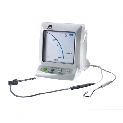 Он обеспечивает высокую точность измерений независимо от наличия ирригационных растворов в канале. Эргономичный корпус аппарата легкий, прочный, с большим цветным дисплеем для отображения измерений и акустического мониторинга позиций файла.