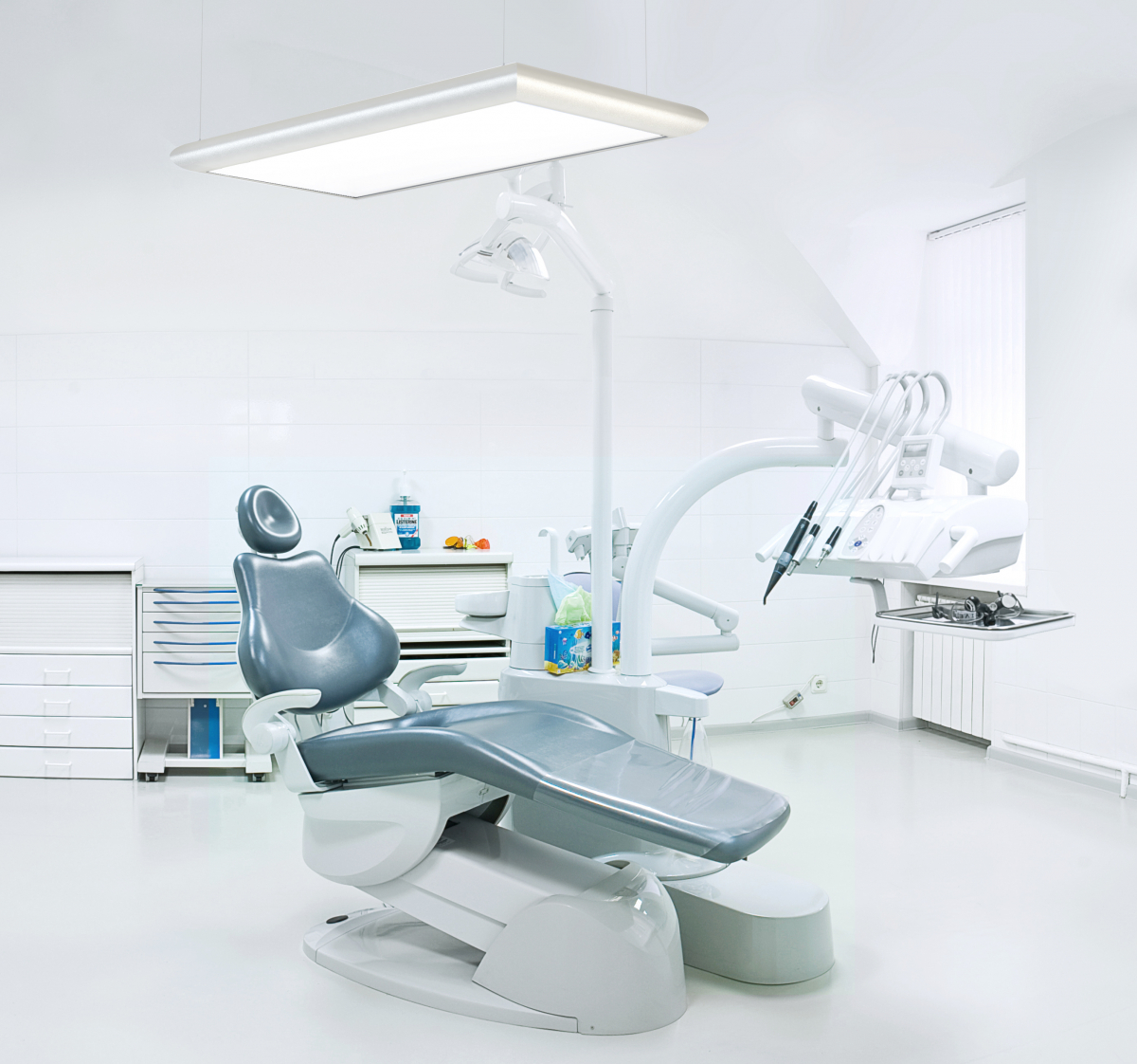 Качество освещения максимально приближено к естественному солнечному свету: цветовая температура 6500 K, полная спектральная цветопередача (RA 85). Включение, выключение светильника, а также плавная настройка уровня яркости осуществляется с пульта дистанционного управления: нет необходимости размещать в кабинете отдельный выключатель.