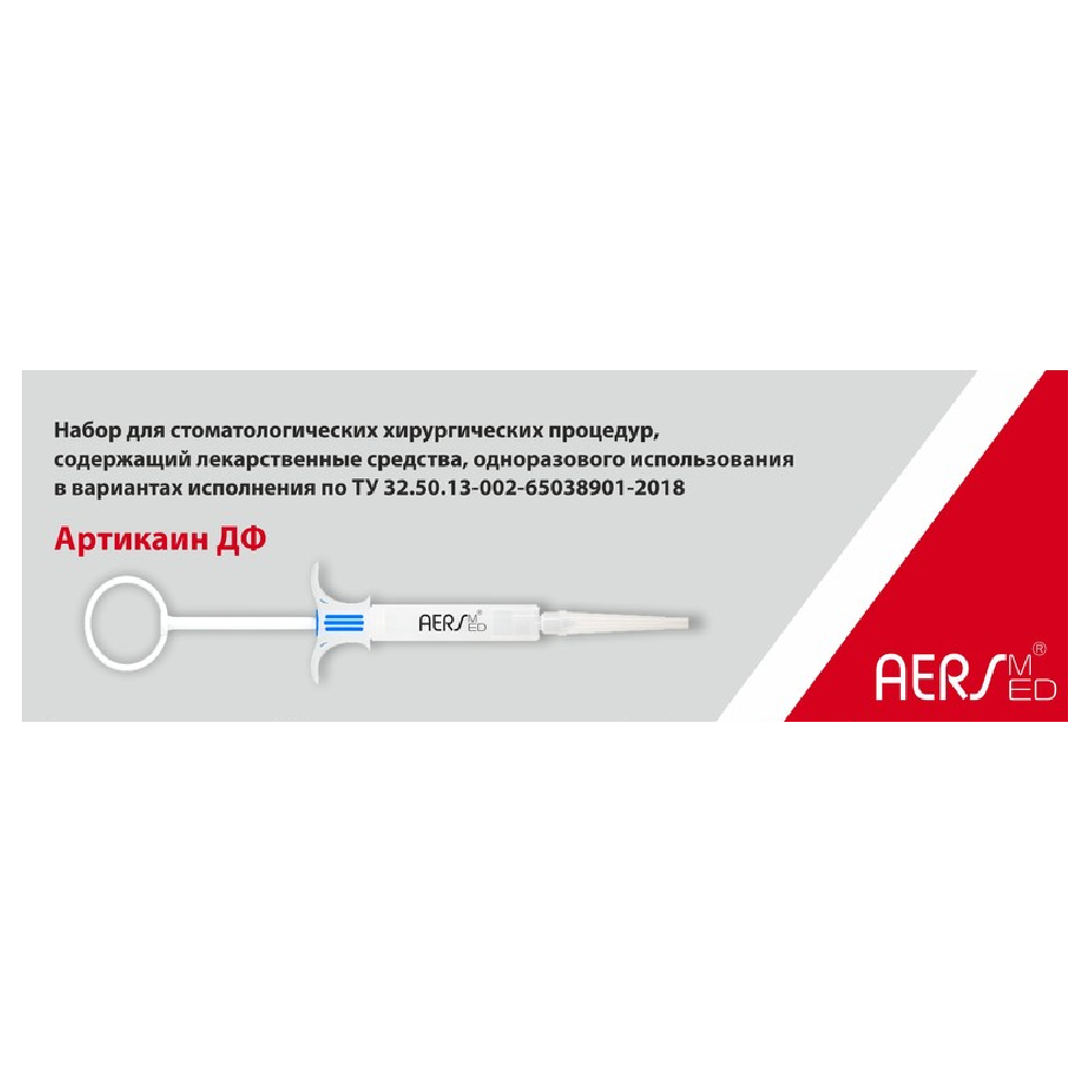 Одноразовый карпульный инъектор АЭРС с анестетиком Артикаин ДФ 1*100 000 от производителя АЭРС-МЕД. Набор содержит одноразовый карпульный инъектор, стерильную иглу, лекарственное средство.
