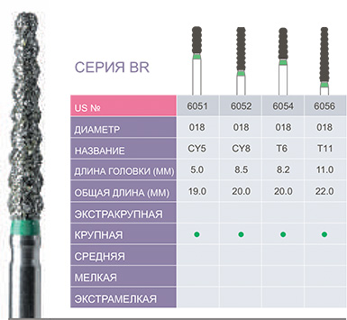 Бор алмазный BR 6056-018C, T11 (5 шт.), Prima Dental Group.