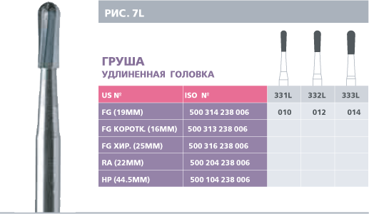 Бор ТВС оперативный 332L FG, грушевидный (10 шт.), Prima Dental Group.