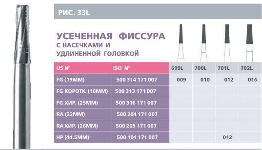 - FG — для турбинного наконечника;