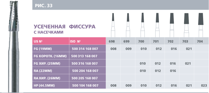 - FG — для турбинного наконечника, SL — хирургическая длина;