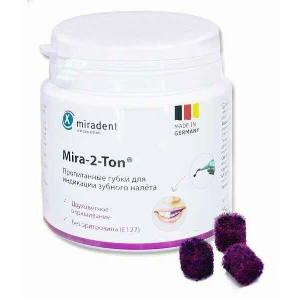 Mira-2-Ton, губки от производителя Miradent — пропитанные раствором губки для индикации зубного налета.