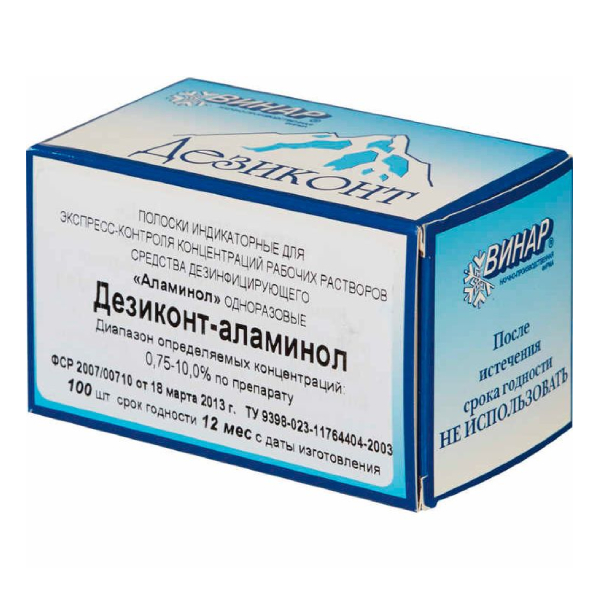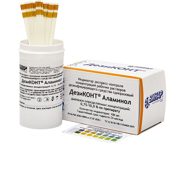 Дезиконт-Аламинол от производителя Винар — одноразовые индикаторные полоски экспресс-контроля концентраций рабочих растворов дезинфицирующих средств