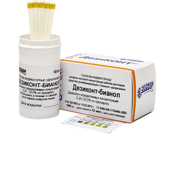 Дезиконт-Бианол от производителя Винар — одноразовые индикаторные полоски экспресс-контроля концентраций рабочих растворов дезинфицирующих средств
