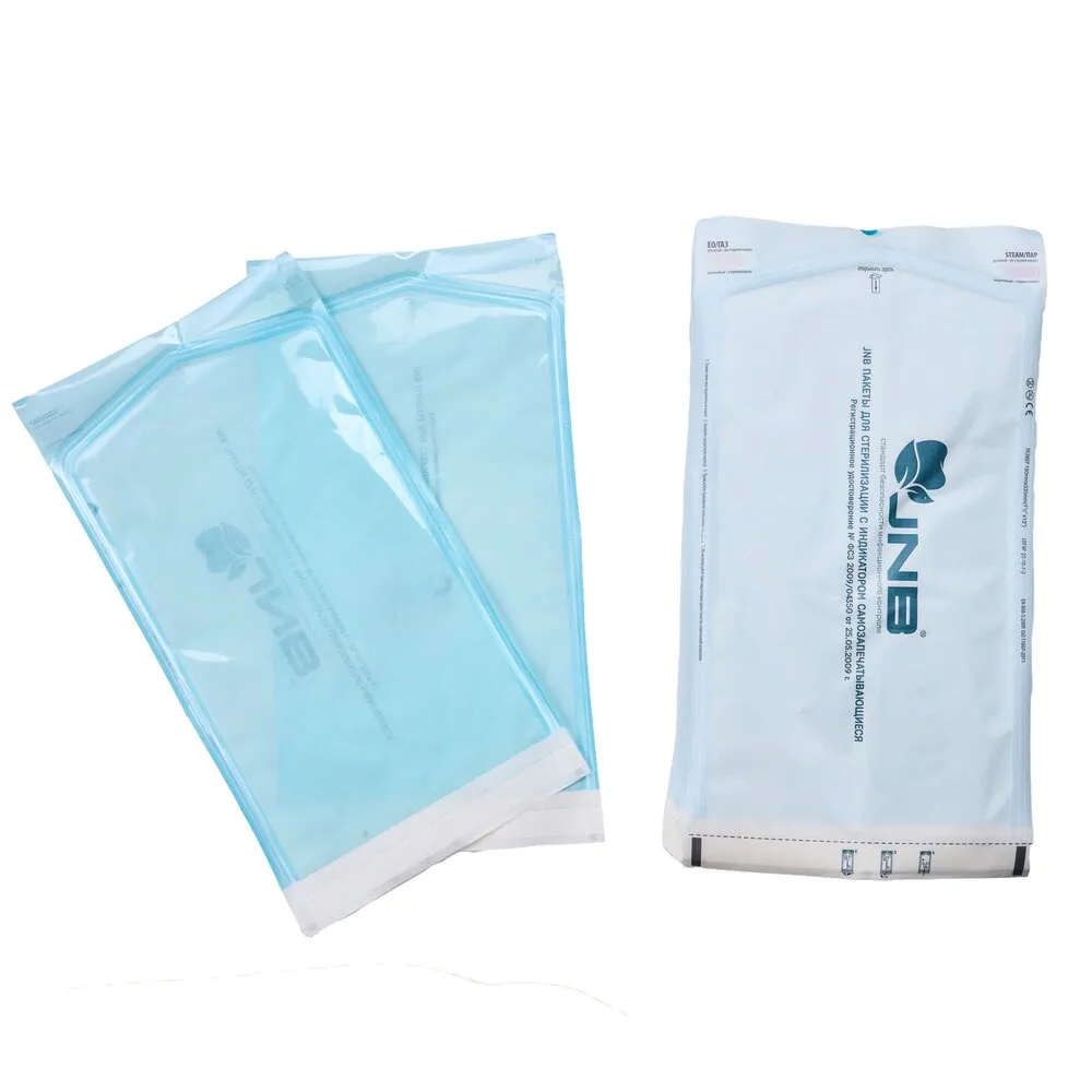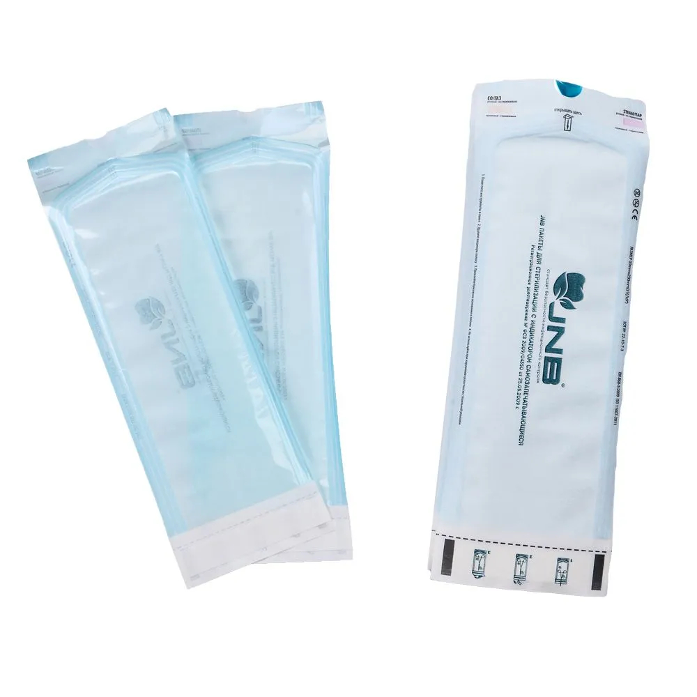 Пакеты для стерилизации с индикатором самозапечатывающиеся от производителя JNB — двухслойные пакеты для паровой стерилизации с индикатором качества стерильности.