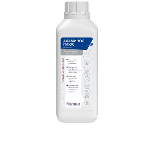 «Аламинол Плюс» от производителя Ниопик — обладает мощным антимикробным действием в отношении грамотрицательных и грамположительных микроорганизмов, в т.ч. возбудителей туберкулеза, а также грибов рода Кандида и Трихофитон, вирусов (тестировано на вирусе полиомиелита 1 типа). Обладает моющими свойствами.