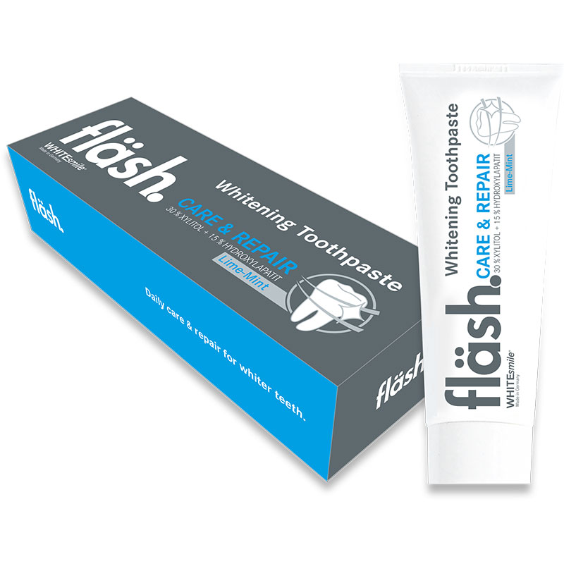 Отбеливающая зубная паста Flash – это идеальный уход за белыми зубами до и после процедуры отбеливания. Предназначена для ежедневного использования. Подходит для чувствительных зубов. Укрепляет эмаль благодарю действию 15% гидроксилапатита. Двойная защита от кариеса с помощью фторида натрия в содержании 1100 мд и 30% ксилита. Поддерживает слюноотделение и способствует реминерализации. Не содержит SLS, триклозана, отбеливающих средств. Неабразивный.