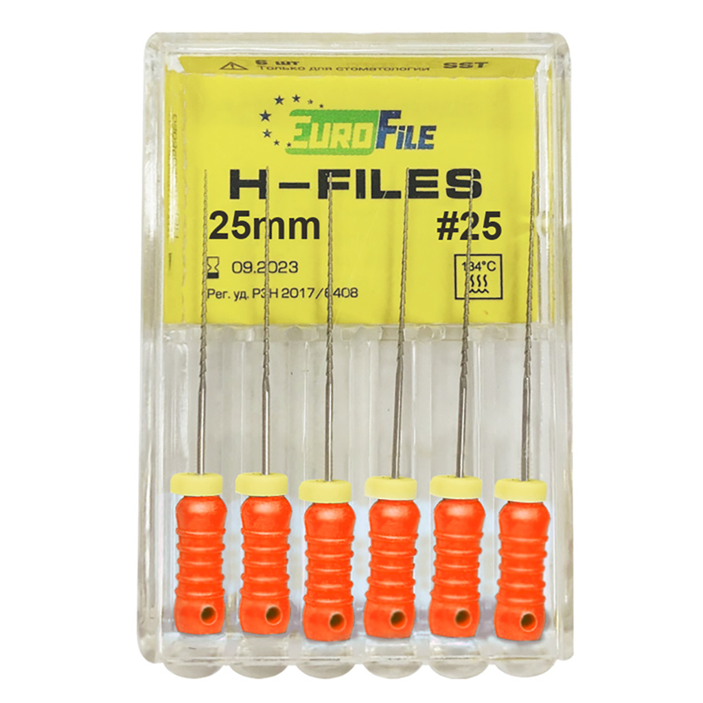 H-Files от производителя EuroFile - ручной режущий стоматологический эндодонтический инструмент со спиральной нарезкой рабочей части.