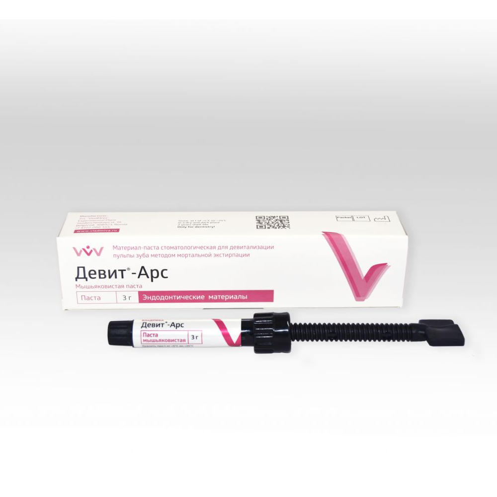 Девит-АРС - мышьяковистая паста для быстрой и безболезненной девитализации пульпы (3г). Готова к применению. Производство: Владмива.