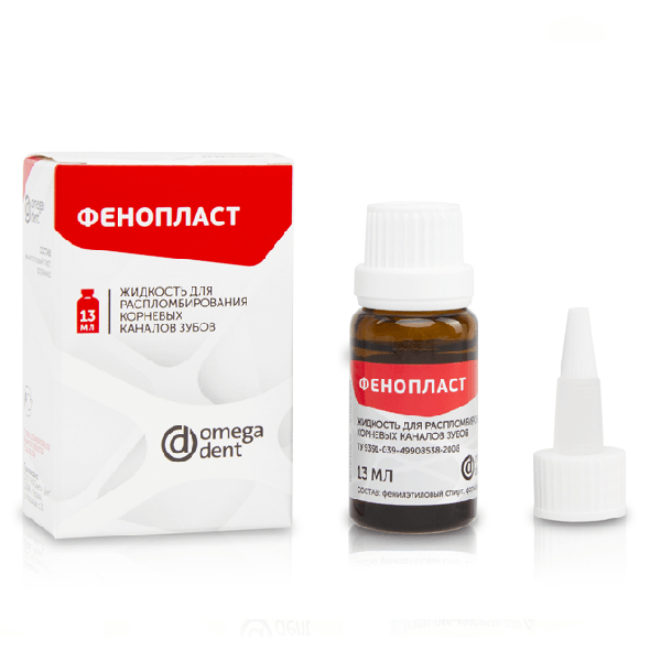 Фенопласт от производителя Омега-Дент – это жидкость, использующаяся при повторном лечении корневых каналов. Она предназначена для размягчения пломбировочного материала, изготовленного на основе фенол-альдегидных смол.