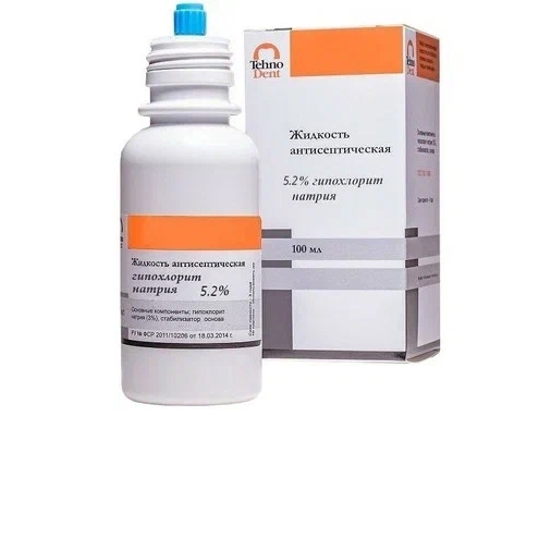 - Жидкость антисептическая гипохлорит натрия 5,2%: флакон пластик 100 мл.