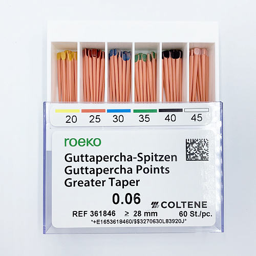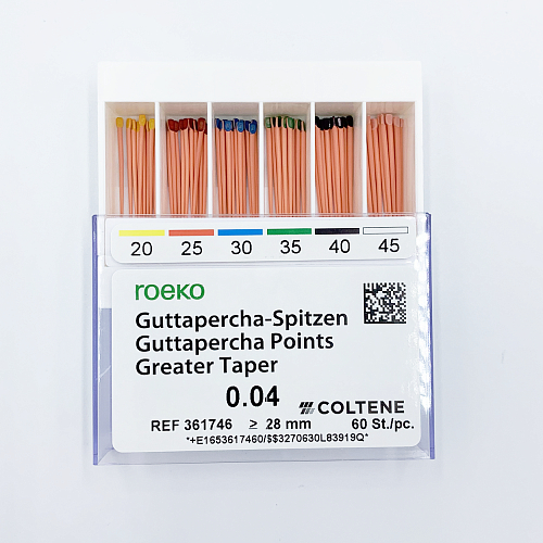 <p>Гуттаперчевые штифты Greater Taper от производителя Roeko — высококачественные гуттаперчевые штифты для обтурации корневых каналов.</p>