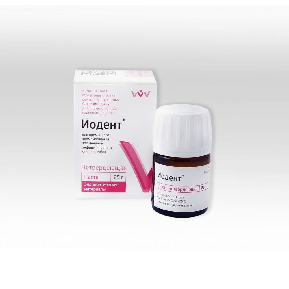 Паста Иодент нетвердеющая - паста стоматологическая рентгеноконтрастная бактерицидная для временного пломбирования корневых каналов от производителя Владмива.
