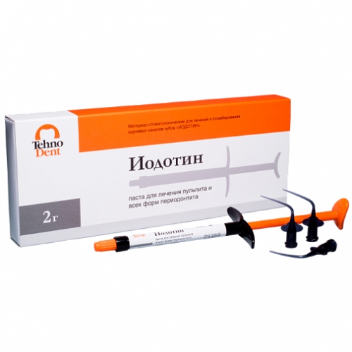 Иодотин (эндодонтический) от производителя TehnoDent — эндодонтический материал для временного заполнения корневых каналов на основе иодоформа и гидроокиси кальция.