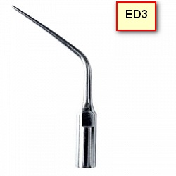 - Насадка ED3D для удаления минерализованных отложений и пломбировочного материала из пульпововой полости. Насадка с алмазным покрытием (40 мкм) для расширения зубного канала и формирования доступа к файлам, сломанным внутри канала;