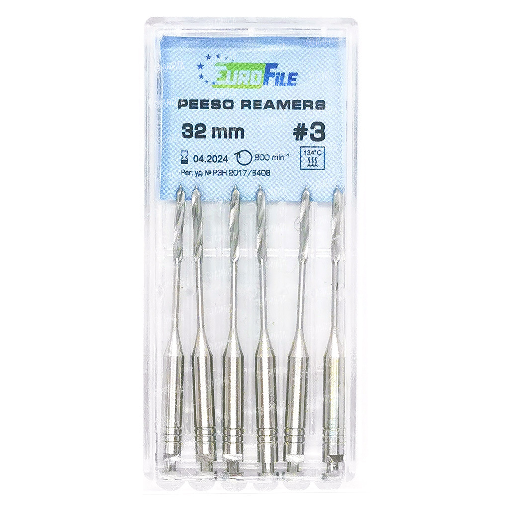 Peeso Reamers от производителя EuroFile - машинный режущий стоматологический эндодонтический инструмент со спиральной нарезкой рабочей части.