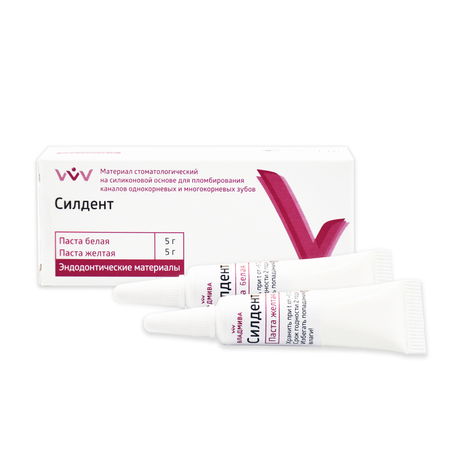 Силдент — пломбировочный материал на силиконовой основе для пломбирования каналов однокорневых и многокорневых зубов от производителя Владмива.