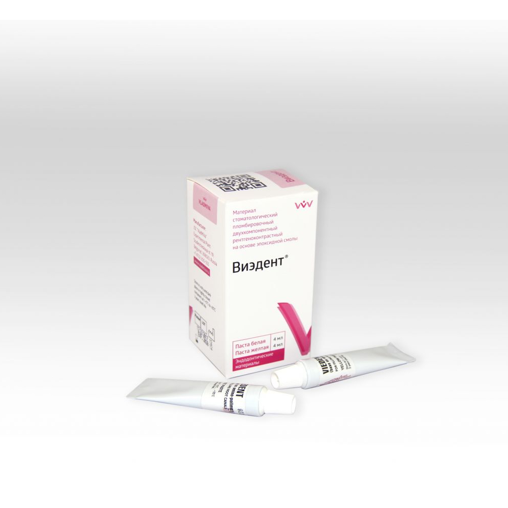 - Материал Виэдент - двухкомпонентный порошок-жидкость или паста-паста, рентгеноконтрастный материал на основе гидроокиси кальция эпоксидной смолы.