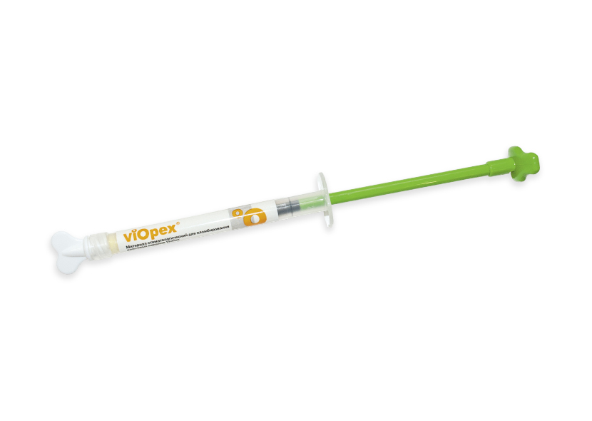 - VioPex используется во время пломбирования корневых каналов (апексификация), обладает сильным стимулирующим костеобразующим действием, а также широко применяется при лечении травмированных зубов.