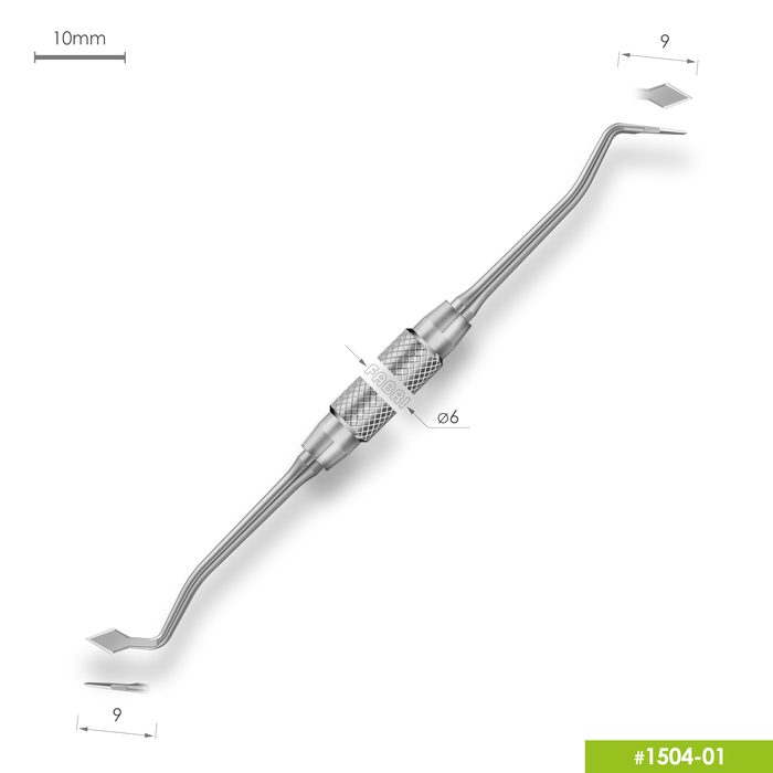 1504-01# Инструмент для моделирования (карвер Мэхлюма) от производителя Fabri — двухсторонний карвер Мэхлюма с ромбовидными рабочими частями и режущими кромками. Применяется на этапе предварительного моделирования и при реставрациях для удаления излишков пломбировочного материала, формирования фиссур и бугров.