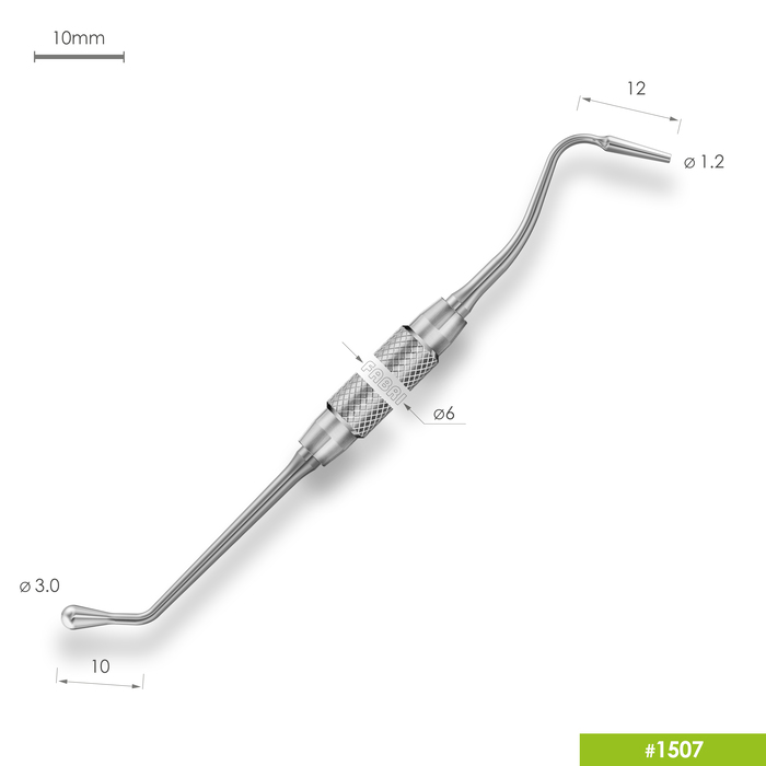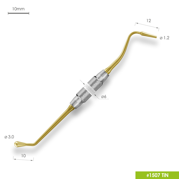 1507# Двухсторонний штопфер-конденсатор от производителя Fabri — для полостей I и II класса по Блэку, также используется для конденсации композитной массы с целью равномерного распределения в полости зуба и заполнения пор.