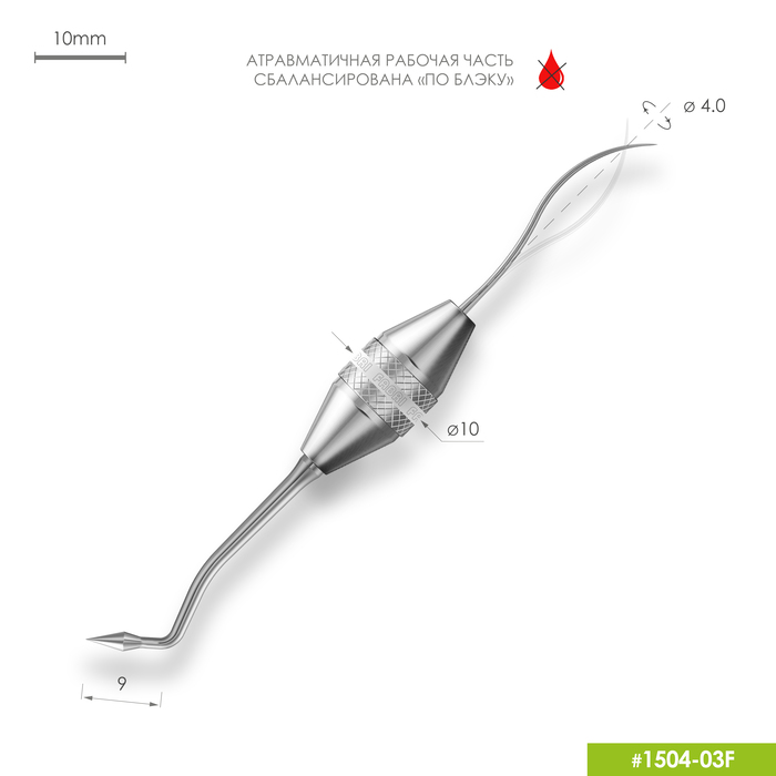 - Острая рабочая часть инструмента 1504-03F сбалансирована «по Блэку».