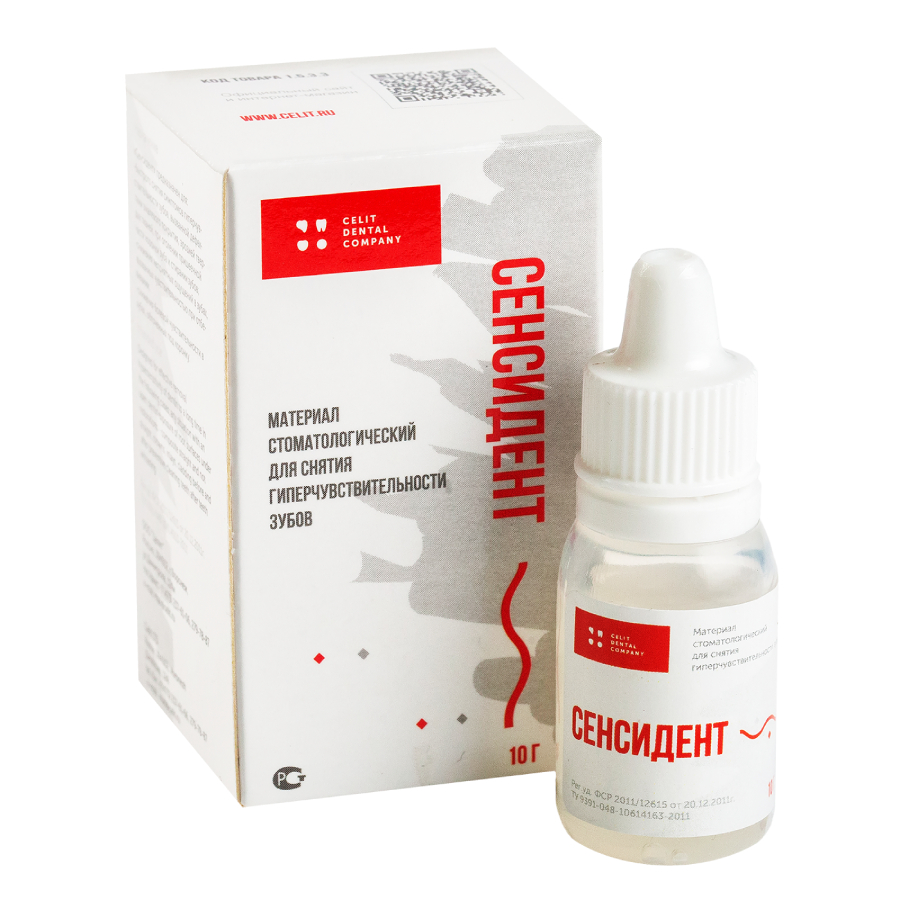 Сенсидент от производителя Целит — материал стоматологический, для снятия гиперчувствительности зубов.