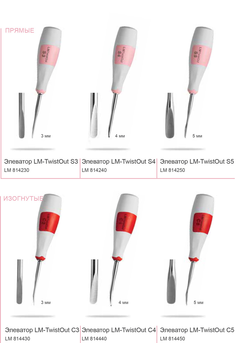 LM 814# Элеваторы LM-TwistOut от производители LM-Instruments предназначены для использования в ситуациях, когда требуется приложить значительное усилие при извлечении зуба.
