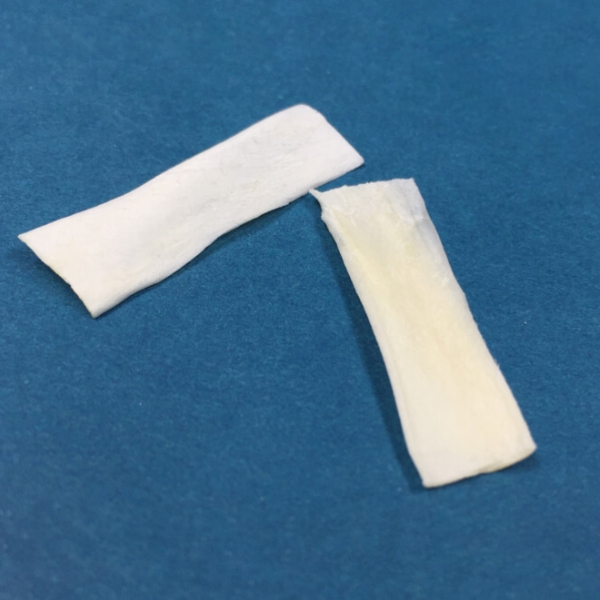 В смоченном виде, легко поддающийся контурированию хирургическими ножницами. Смачивание происходит в течение 4-8 минут.