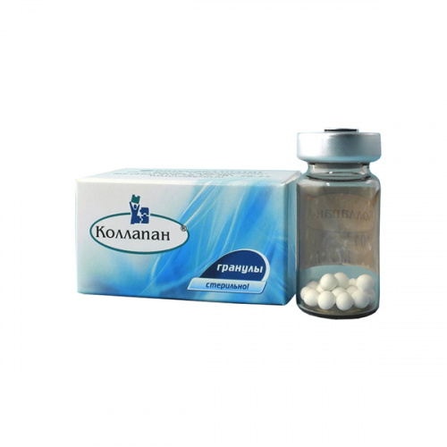 Гранулы Коллапан от производителя Интермедапатит - стерильный остеопластический биокомпозиционный материал, применяется для восстановления костной ткани, профилактики и лечения гнойных осложнений в различных областях костной хирургии.