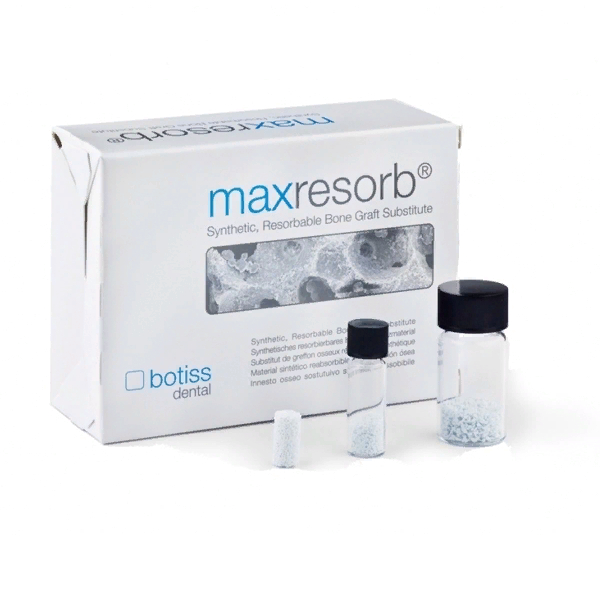 Maxresorb гранулы от производителя Botiss – инновационный двухфазный фосфат кальция, является инновационным, безопасным, надежным и полностью синтетическим заменителем костного трансплантата, простым в обращении и обладающим улучшенной резорбируемостью.