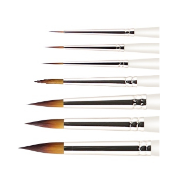 - Артикул 4984-079, кисть синтетика двухцветная круглая №0 (DN=0,7мм, L=9мм).