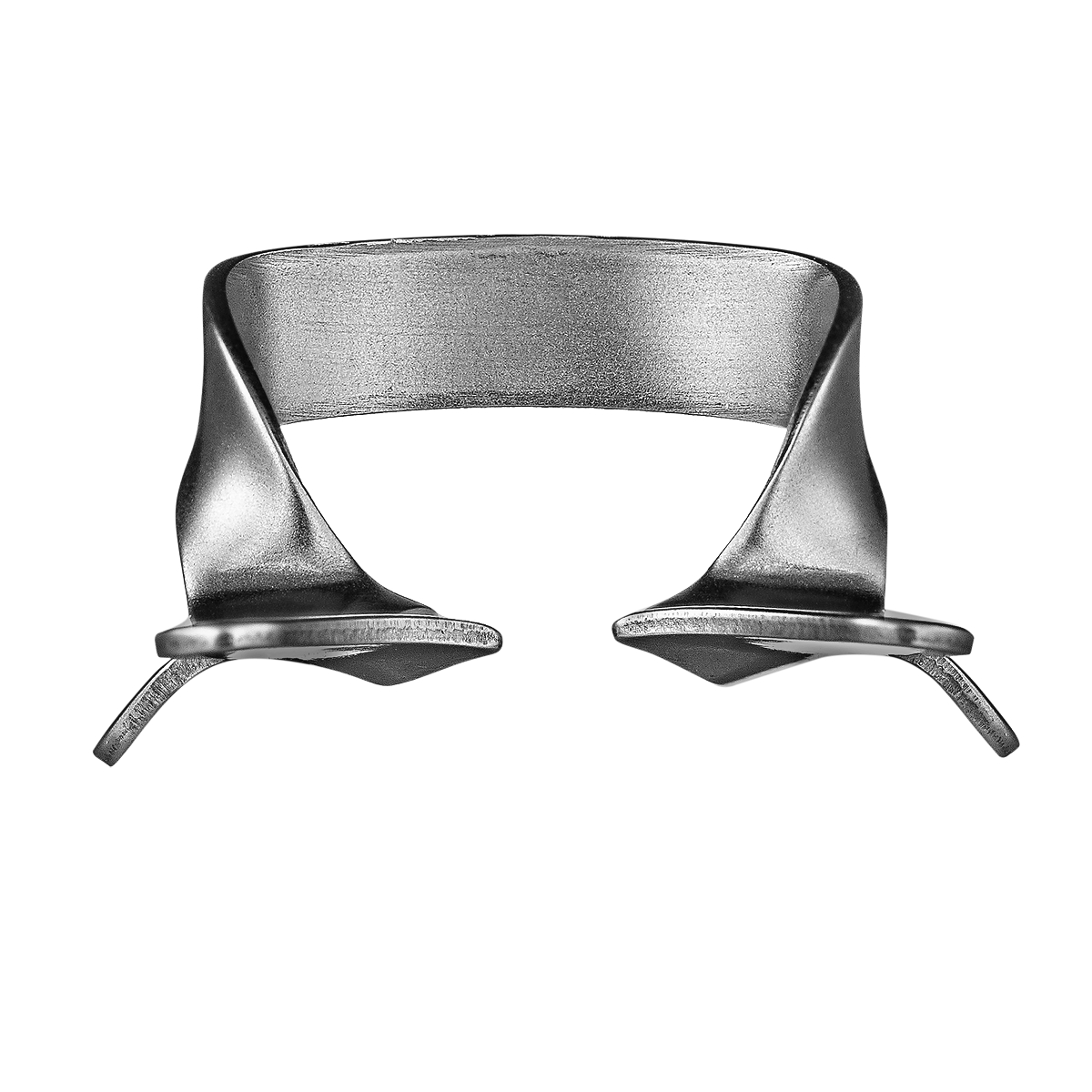 - Выгнутая назад дуга кламмера для коффердама обеспечивает легкий доступ к дистальной части моляра.