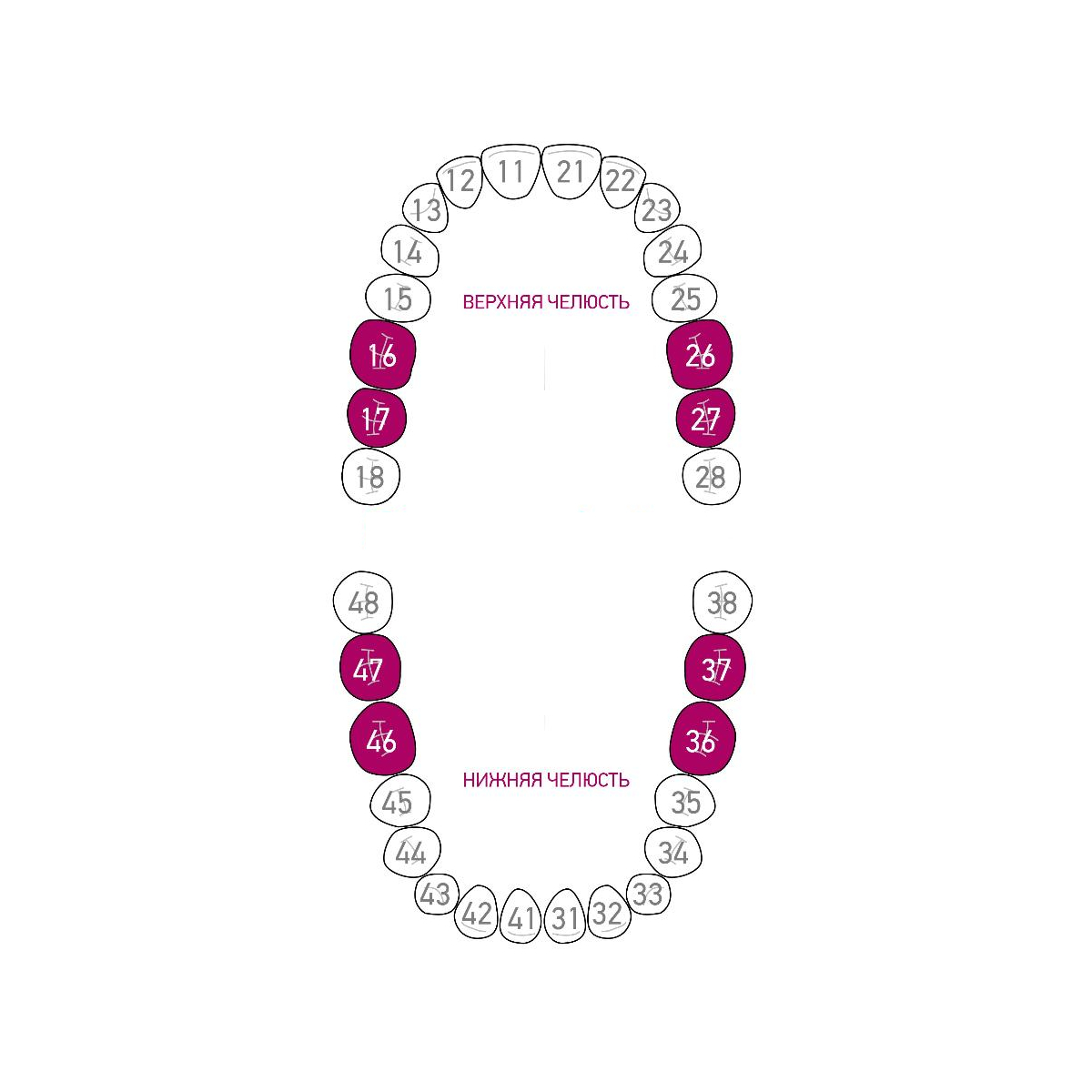 Кламп для коффердама рекомендуется для зубов: 17-16-26-27-37-36-46-47.
