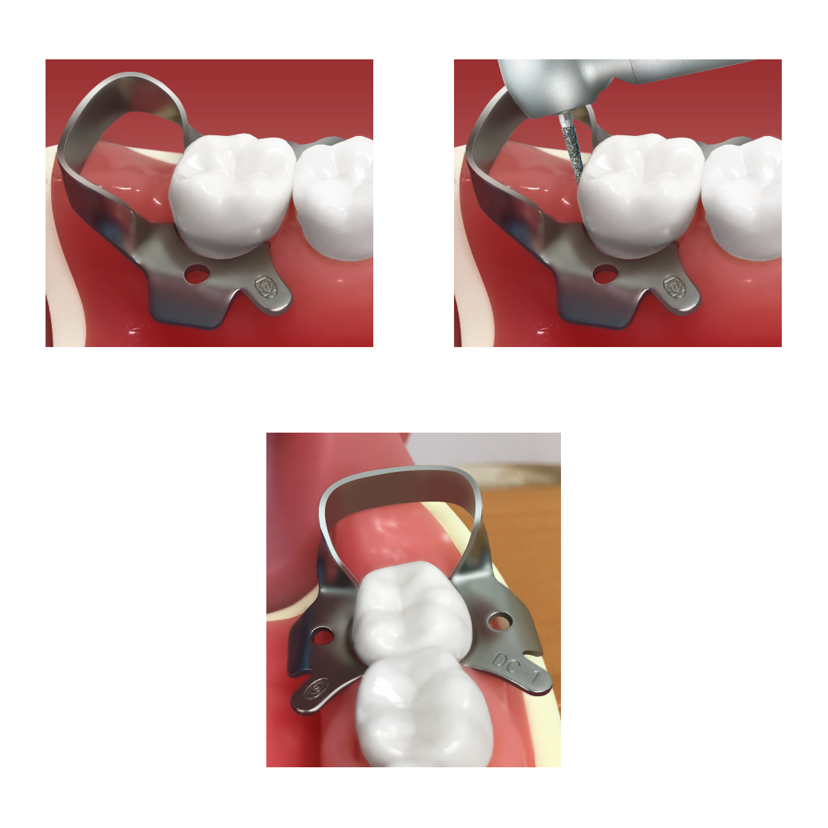 - Не рекомендуется растягивать клампы Dentech более чем на 1,5мм относительно ширины зуба. Приложение чрезмерного усилия при растяжении клампа может привести к его поломке.