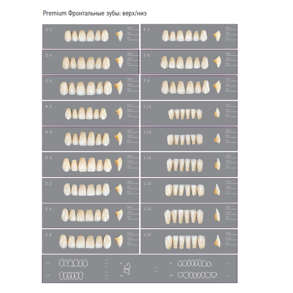 - Зубы линии Премиум изготавливаются из мультиплекс полимерных матриц (МРМ). Это высокосетчатый материал, который гарантирует адекватную функциям абразивность и выдерживает большие нагрузки, что в свою очередь является предпосылкой для естественного процесса абразии.