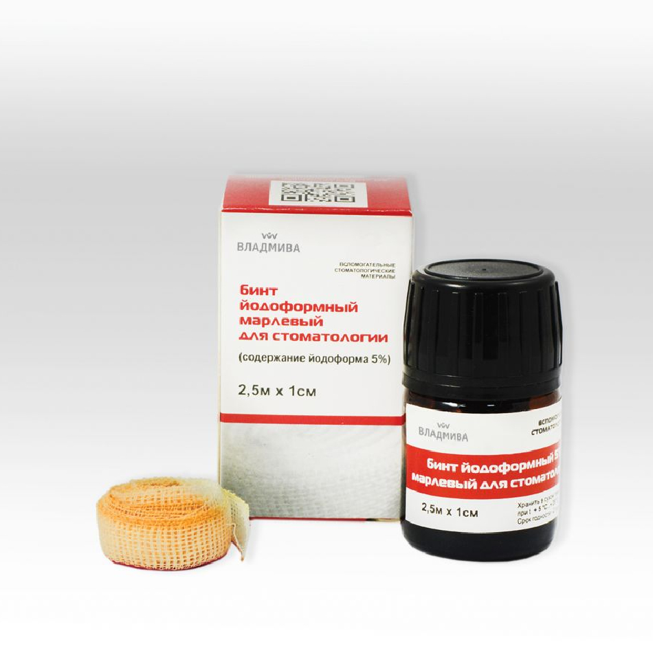 Иодоформный бинт (стерильный флакон) — бинт йодоформный марлевый для стоматологии от производителя Владмива.