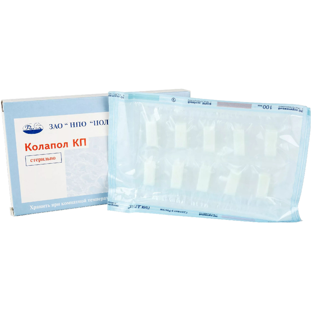 - КОЛАПОЛ КП усиливает остеогенез (активнее, чем гемостатический КОЛАПОЛ КП, но меньше, чем КОЛАПОЛ КП-3) и обладает значительным местным гемостатическим действием.