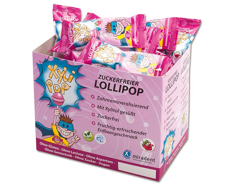 miradent XyliPOP - новый леденец на палочке со вкусом клубники, способный развеять многолетнее убеждение! Теперь можно наслаждаться сладостью не только для удовольствия, но и для укрепления зубов.