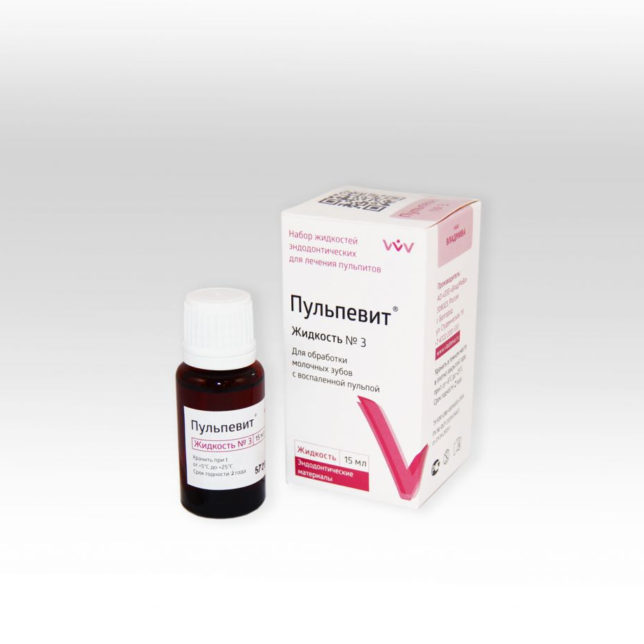 Пульпевит №3 — эндодонтическая жидкость для лечения осложненного кариеса молочных зубов от производителя Владмива.