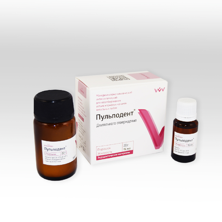 Пульподент длительного отверждения — антисептический материал для пломбирования устьев корневых каналов витальных зубов от производителя Владмива.