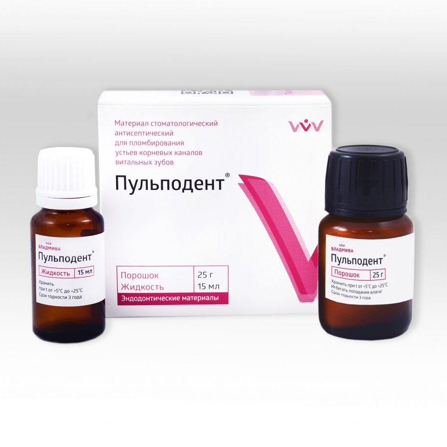 Пульподент от производителя Владмива — антисептический материал для пломбирования устьев корневых каналов витальных зубов.
