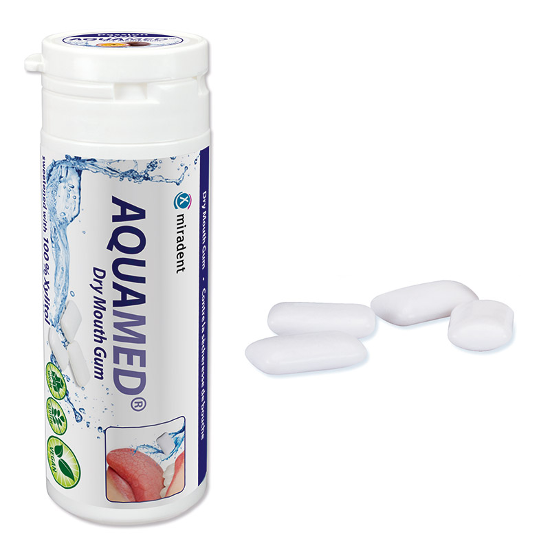 Жевательная резинка Aquamed от производителя Miradent — жевательная резинка с ксилитом поддерживает выработку слюны и оказывает благотворное воздействие на зубы и дёсны.