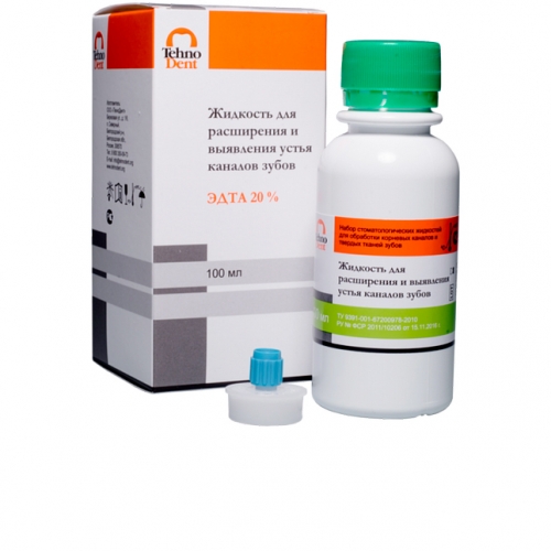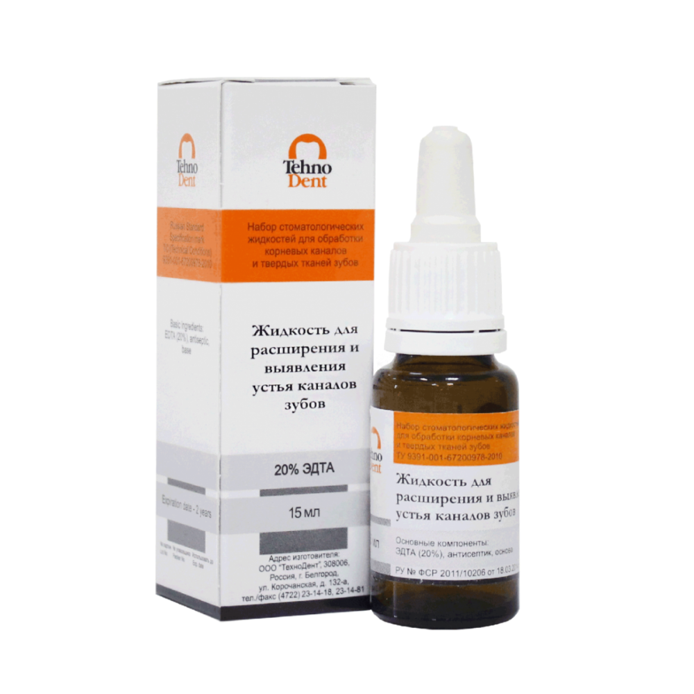 Жидкость ЭДТА для выявления устья каналов и их расширения от производителя TehnoDent — стоматологическая жидкость на основе солей ЭДТА (20%).