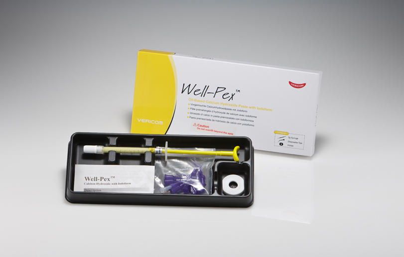 - Well-Pex содержит в своем составе гидроксид кальция и йодоформ, имеет хорошую рентгеноконтрастность и антибактериальные свойства.