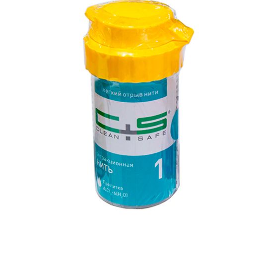 Нить ретракционная с пропиткой от производителя Clean+Safe — стоматологическая вязаная нить, состоящая из 4 волокон, изготовлена из 100% хлопковой нити, пропитана гексагидратом хлорида алюминия 0,42+0,315 мг/см.